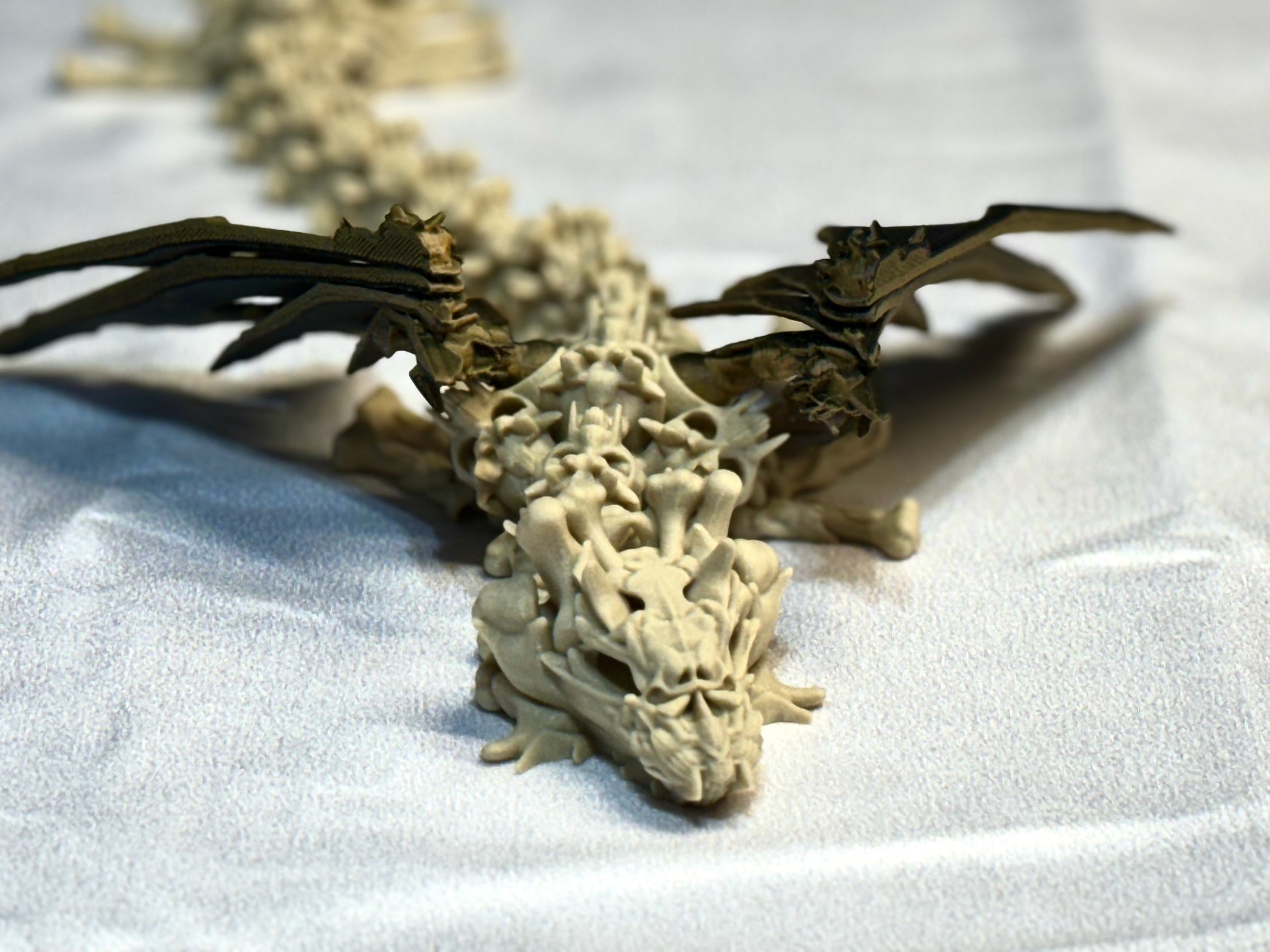 The Hallow Dragon is a menacing 14 inch beast with articulated bone structure and skeletal details. Its wings and single customizable color make it perfect for those looking to add a dark and terrifying touch to their collection. Beware, this dragon is not for the faint of heart.