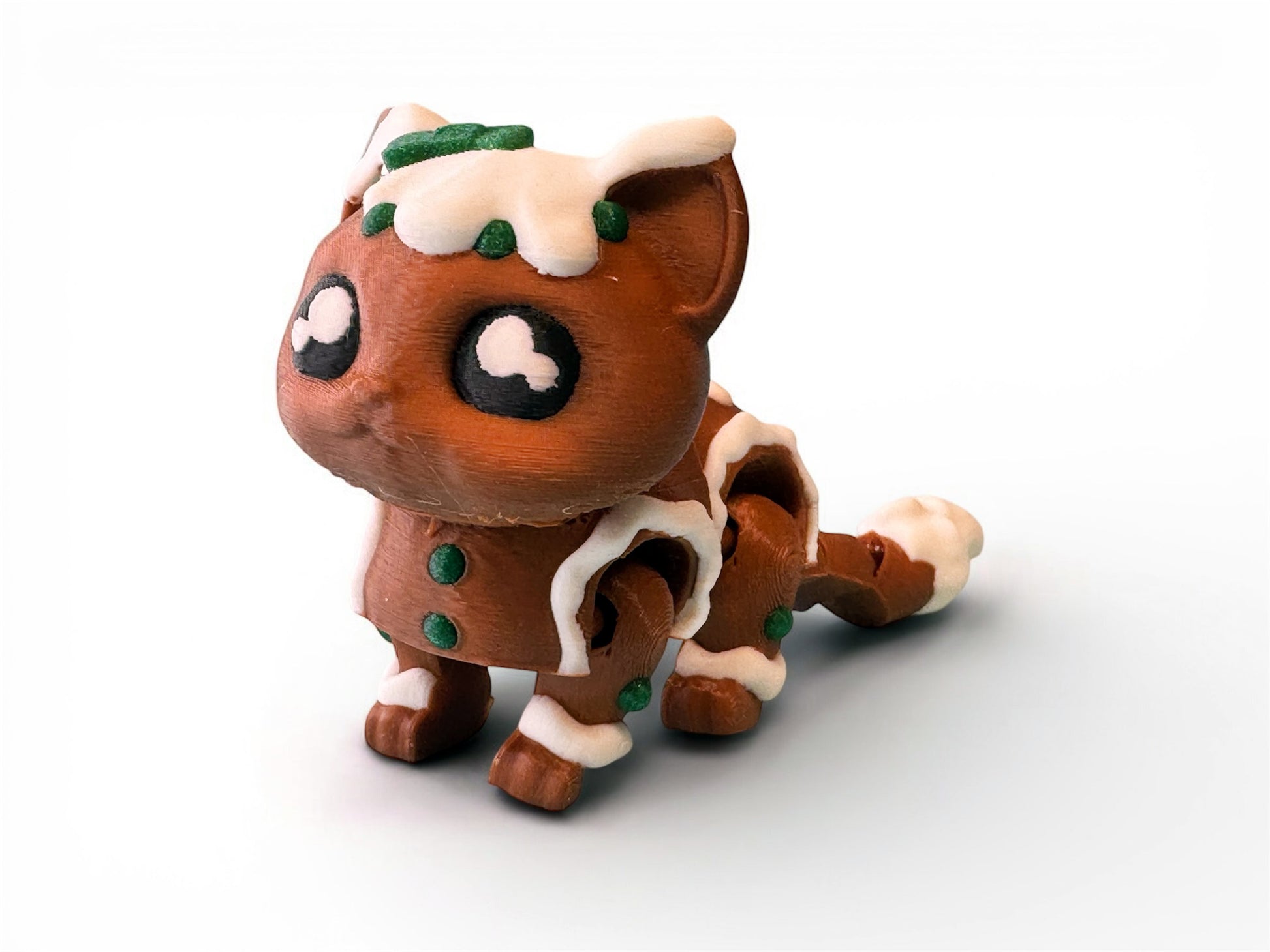 🍪🐱 Gingerbread Articulated Cat – 3D Printed Posable Figure