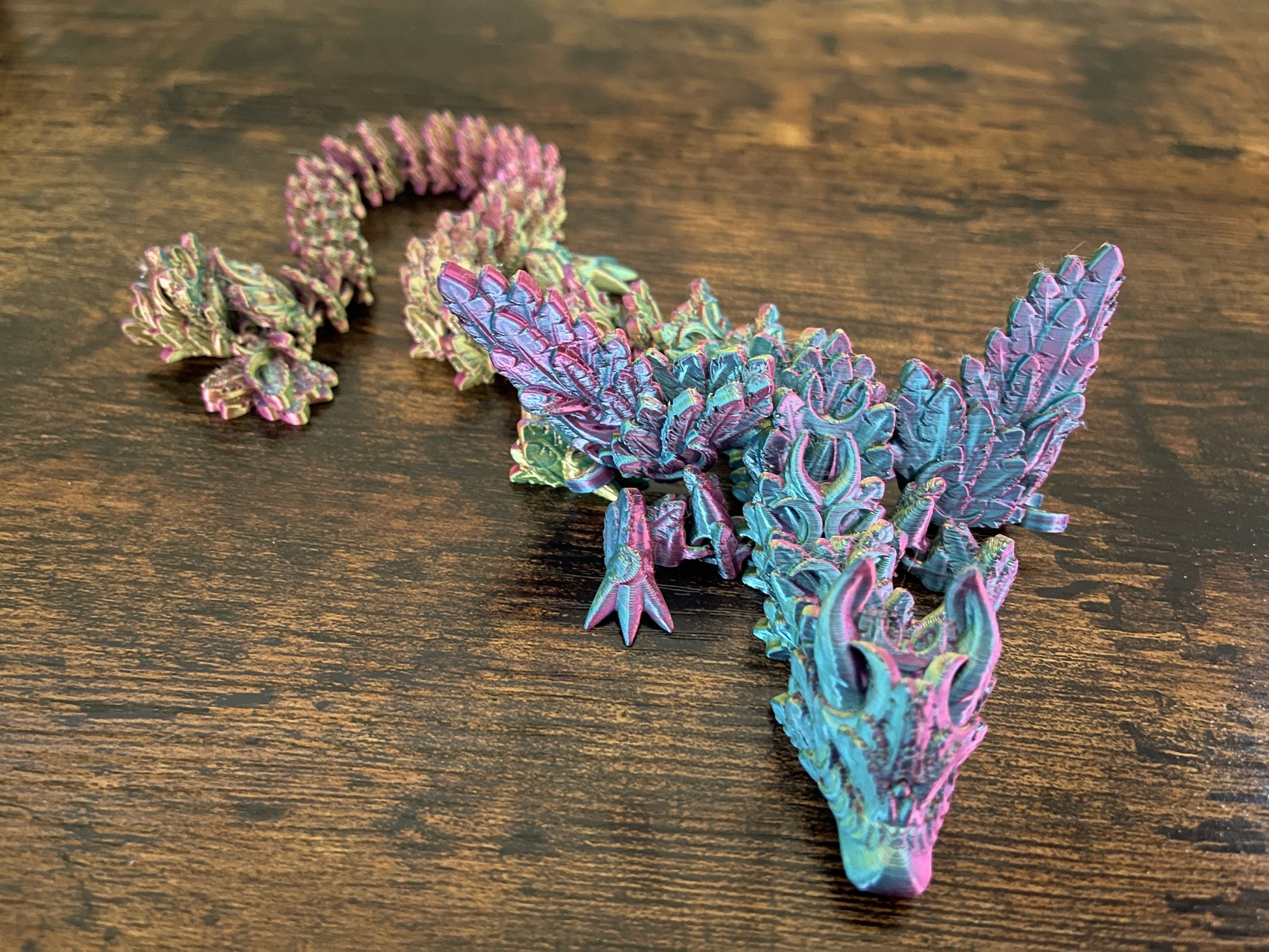 Fly away into a world of mythical wonder with the Lunarwing Dragon. This articulated dragon is adorned with a beautiful moon motif, making it a unique addition to any collection. Let your imagination soar with this enchanting creature!