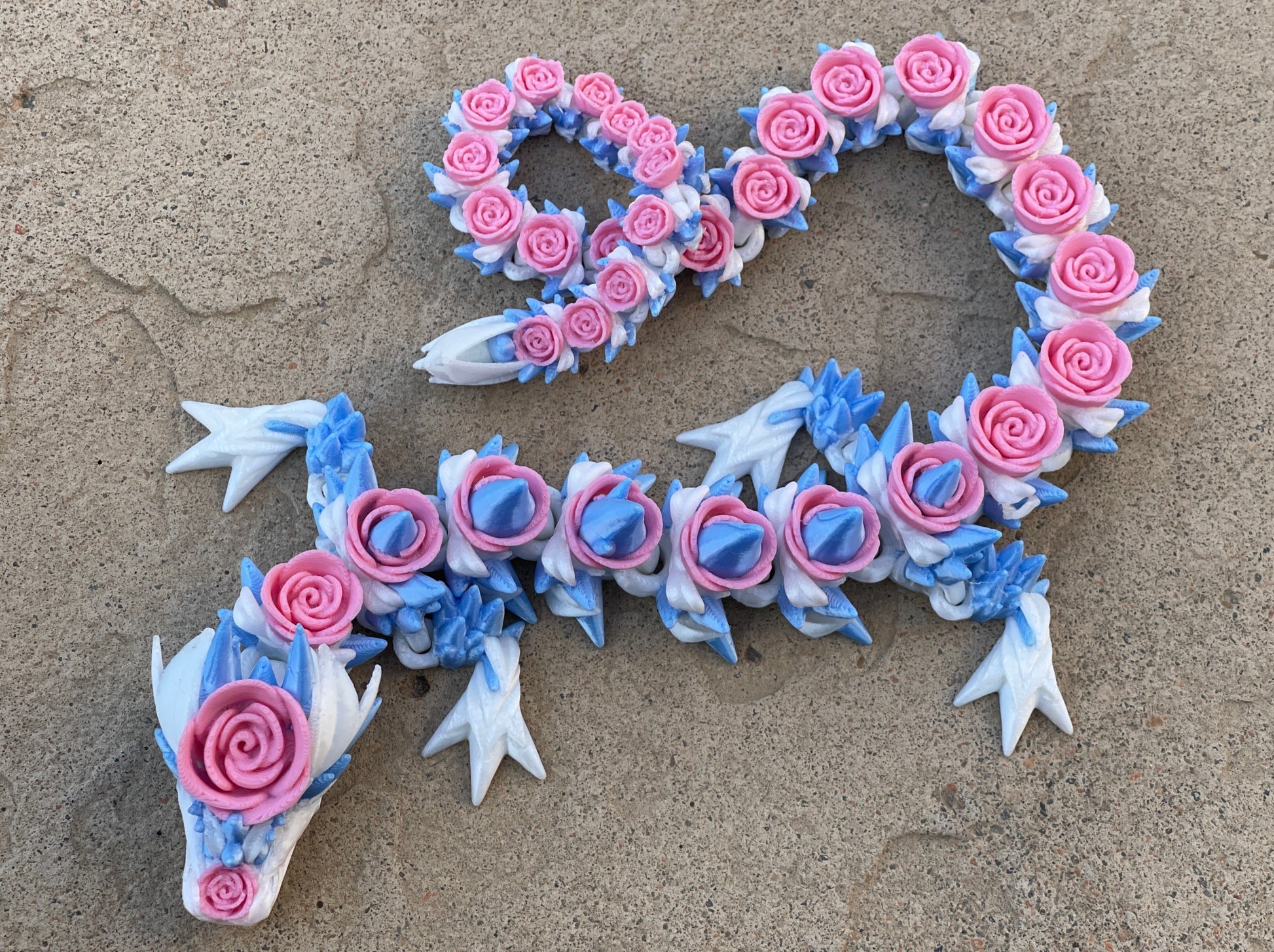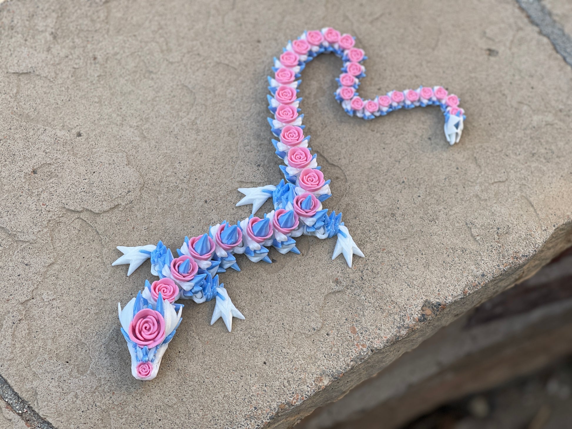 Discover the enchantment of the Rose Dragon. With its articulated body and intricate rose details, this dragon will capture your heart. Perfect for any romantic soul seeking a unique and beautiful addition to their collection.