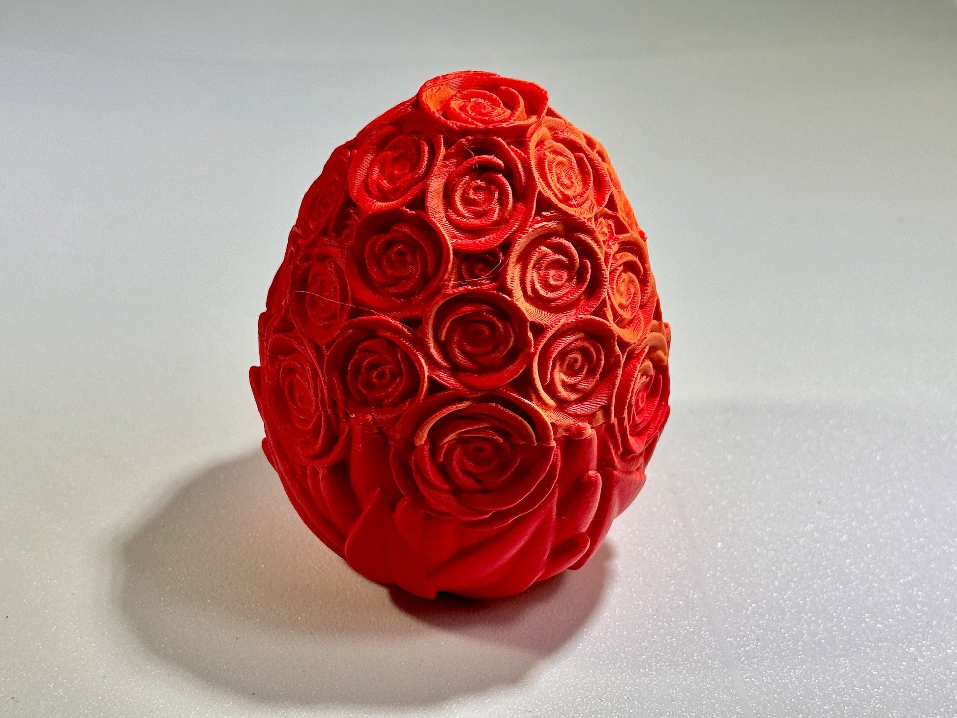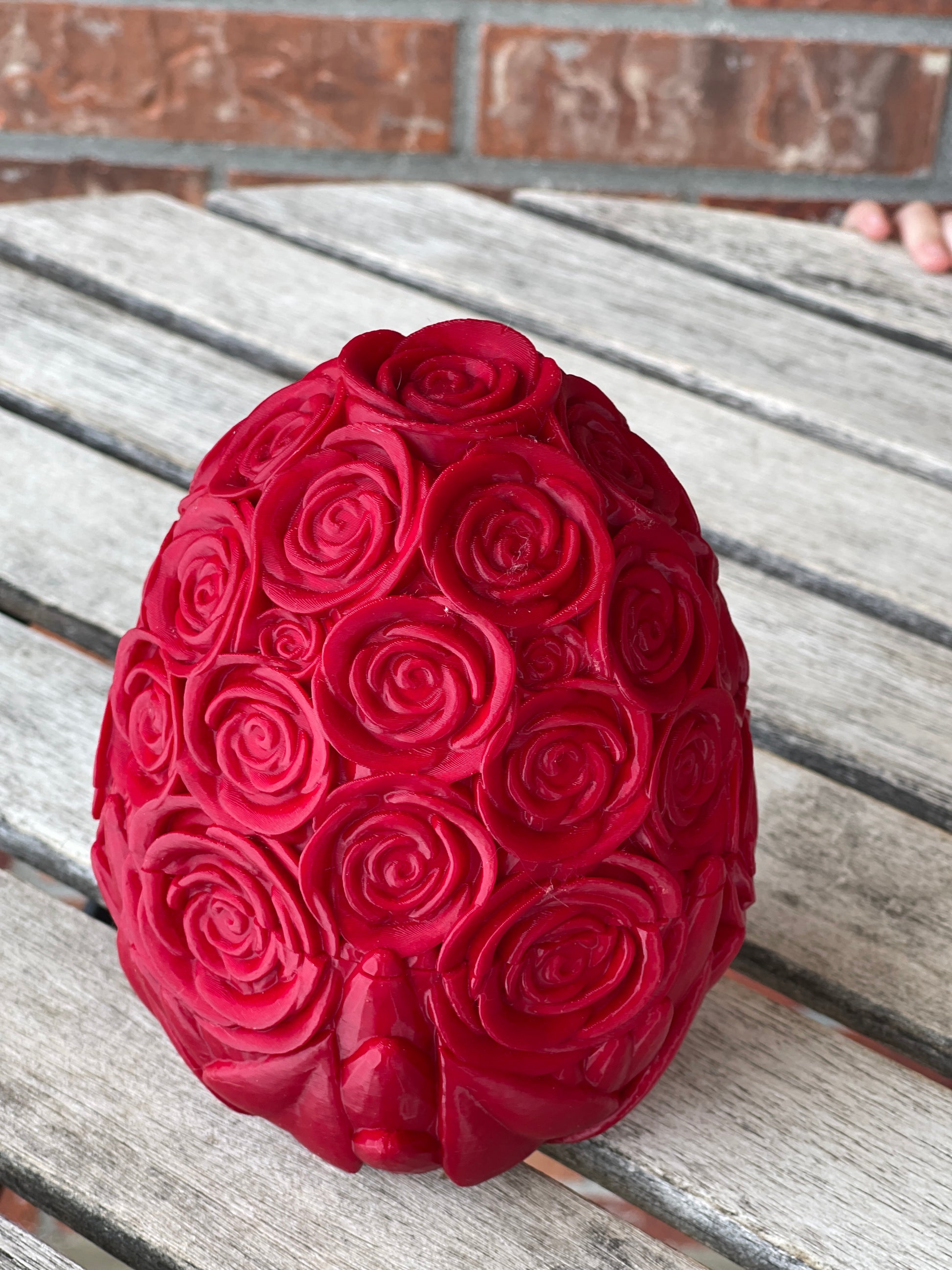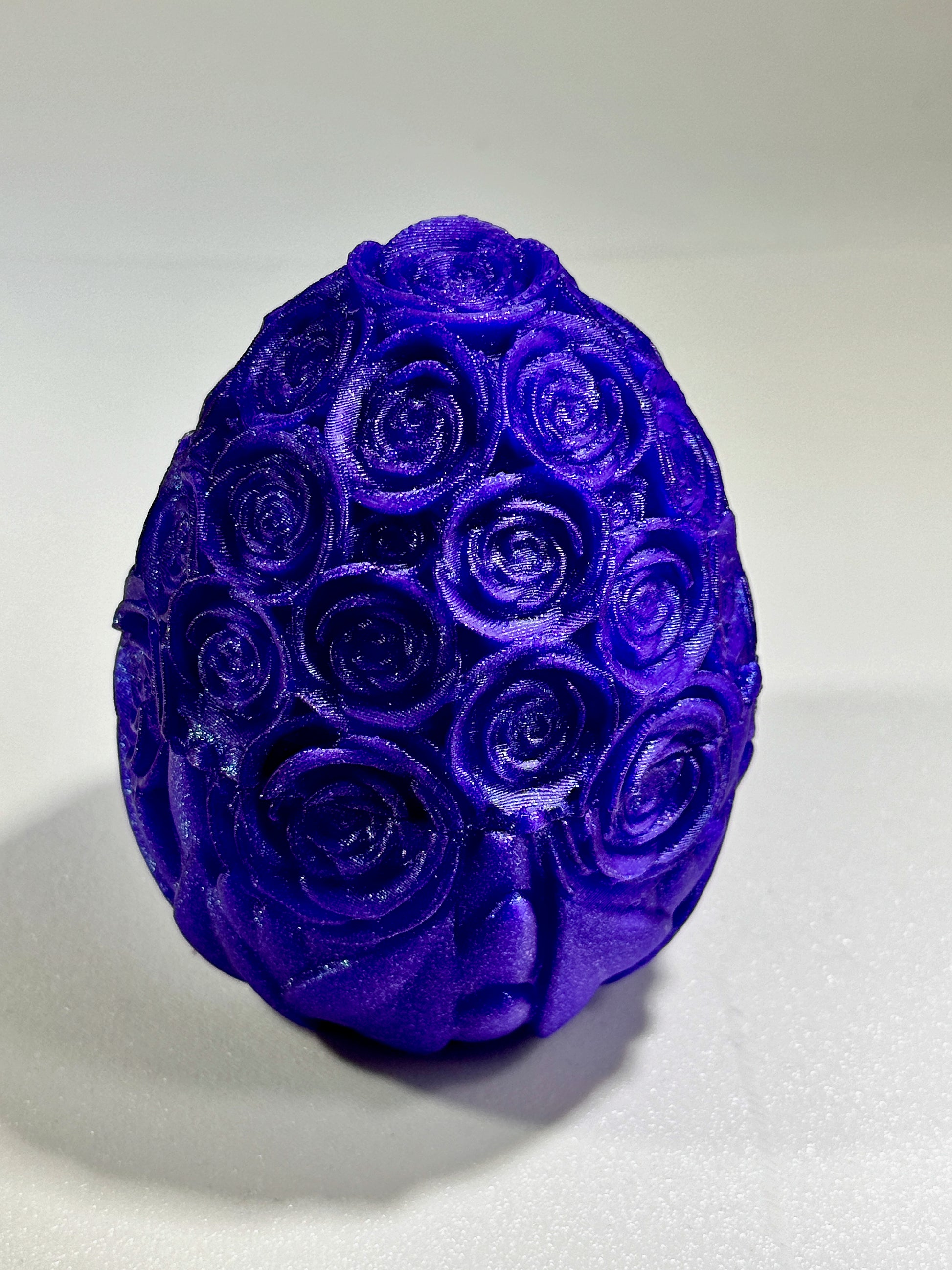 This 3D printed rose egg is a delicate and unique addition to any collection. Its intricate design will add a touch of elegance and whimsy to your space. Perfect for those looking to brighten up their home with a playful twist.