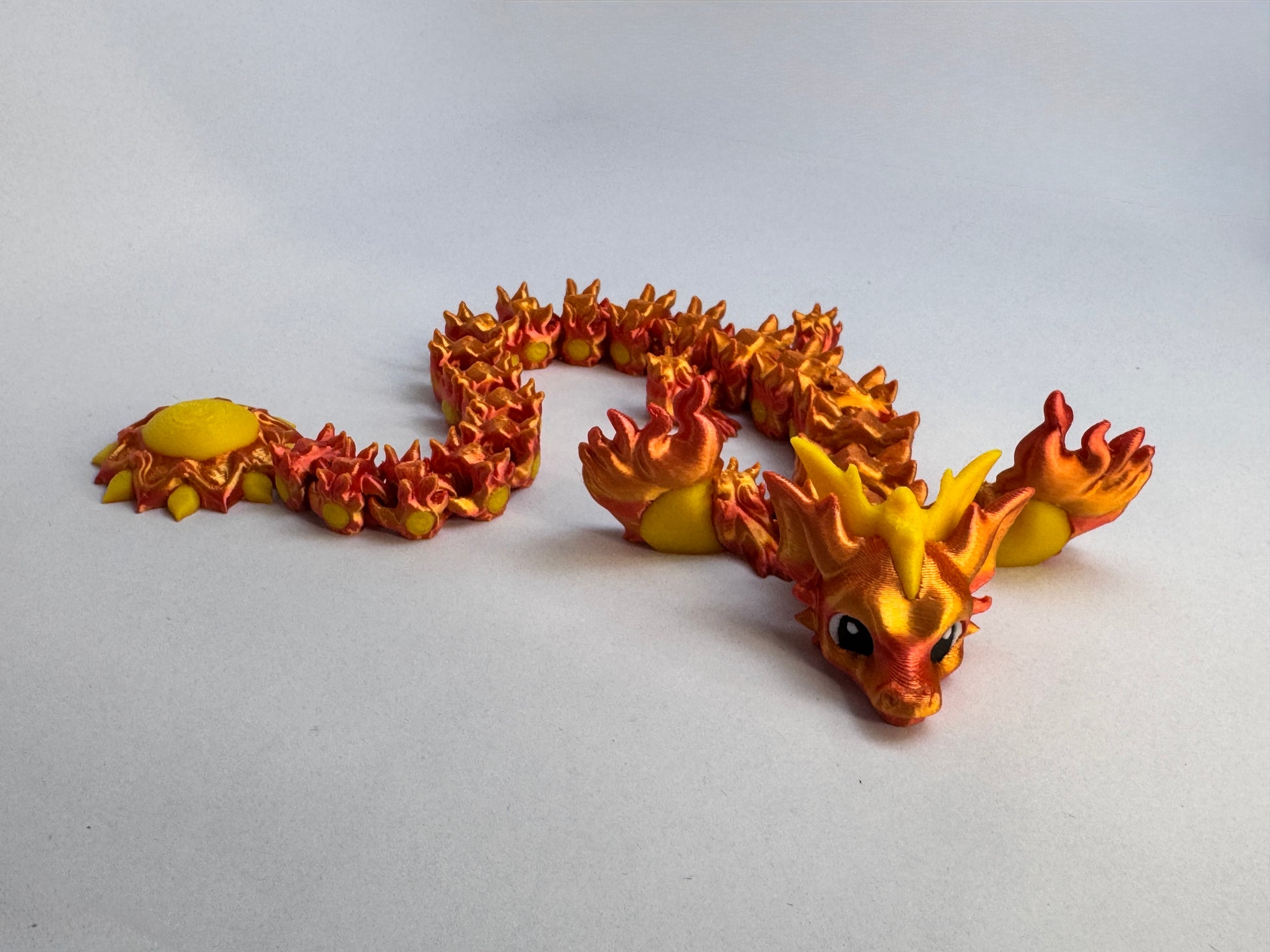 This beautifully crafted articulated dragon is inspired by the sun, bringing warmth and radiance to your collection. With its intricate design and stunning details, Sun Dragon is sure to ignite your passion for collecting mythical creatures.